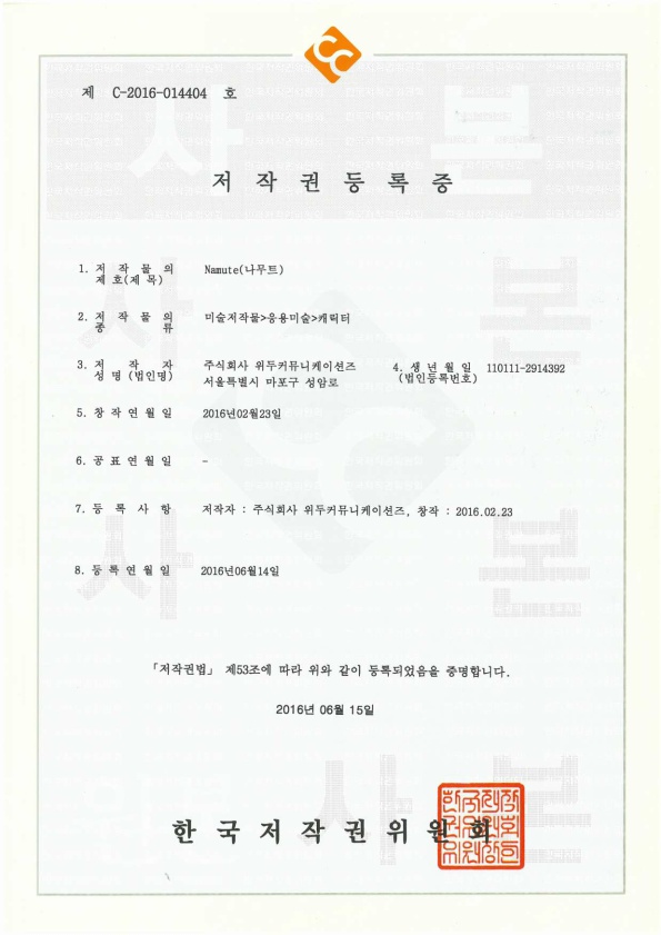 [한국/저작권] 나무트 페이지 정보 작성자 WeDu 댓글 0건 조회 5,295회 작성일 19-05-30 19:08 본문 2016-06-14 저작권 C-2016-014404 나무트 / 미술저작물>응용미술>캐릭터 List Previous[한국/저작권] 리안 19.05.30 Next[한국/저작권] 길리 19.05.30